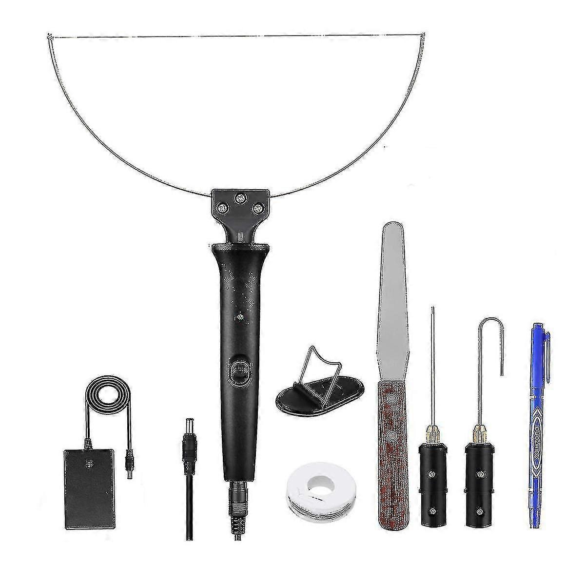 1. High Quality: This foam cutting set is the cost-effective tool. It is easier for users to make advertising words, artistic models and various foam cutting shapes. Foam cutting tools are made of high quality stainless steel metal for life. An indispensable tool for foam cutting and engraving. 2. Clean and cut: heats up quickly, the tube will reach 150 within 10-15 seconds. It cuts Styrofoam with ease and the edges seal , leaving no debris You can cut foam board or foam blocks into the shape you from any . 3. How to use: You can cut the foam from any to make your own , such as costumes, handicraft exercises, or even model making lessons for school kids. It is also great for commercial artwork development, complex and small type advertising (such as letters), hobbyist creations, foam sculpting, art model making, home and school 4. Maintenance Suggestion: Please let it heat up a mouthpiece use, and rest when it continues to work for more than 30 minutes. After cooling, wipe the heating needle with a damp sponge to avoid blackening and hardening due to oxide adhesion. Specification: Heating tube diameter: 2mm Long straight heating head: 12cm Semicircular heating head: 18cm Replace heating wire: 10m Working power: 18w Input power 100-240V AC Output: 7.5/2.5A DC power supply Plug Type:EU Plug,it applies to Indonesia, , , , and so on. Voltage: AC220V Material: plastic colour: As shown Package Contents: 1 x cutter 1 x Squeegee 1 x long straight heater 1 x arc heating head 1 x bow heating head 1 x and pen 1 x Cutter Bracket 1 x heating wire 10 1 supply 1 x English manual Only the above package content, other are not included. Note: Light reflection and different displa may cause the color of the item in the a little different from the real thing. The measurement allowed error is +/- 1-3cm.