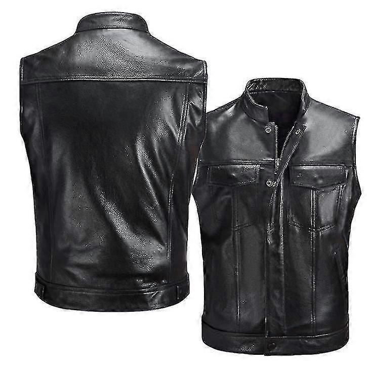 Mens Motorcycle Biker Faux Leather Sleeveless Vest Jacket Slant Zip