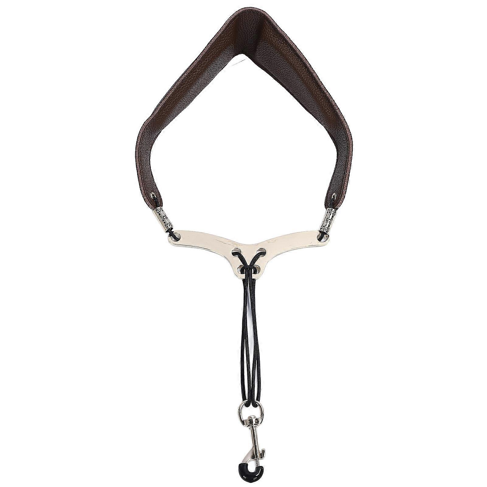 Saxophone Neck Strap for Alto Tenor Sax Breathable Adjustable Instrument Accessories with Metal Hook Brown