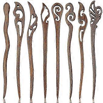 8 kpl puisia hiustikkuja, retro puisia hiuspinnejä, kiinalaisia ​​vintage-hiussyömäpuikkoja, käsintehtyjä veistettyjä hiustikkuja, ruskeaa santelipuuta, hiuspinni