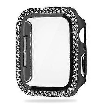 متوافق مع Apple Watch Series 8 45mm مزدوج حجر الراين ديكور غطاء واقي الصلبة PC الوفير الإطار مع شاشة الزجاج المقسى
