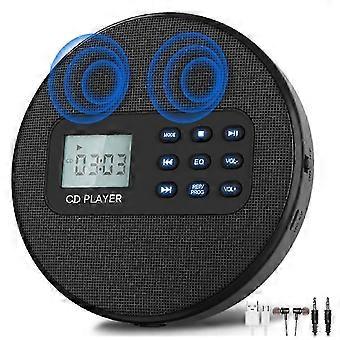 مشغل أقراص مضغوطة محمول مع مكبرات صوت مضادة للتخطي 1500 مللي أمبير مشغل أقراص مضغوطة قابلة للشحن للقرص المضغوط CD RW MP3 أسود بدون BT