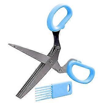 5-kerroksiset siniset keittiösakset basilikan, rosmariinin ja kampasimpukoiden silppuamiseen ja pilkkomiseen - yrttileikkuri ja keittiötyökalu