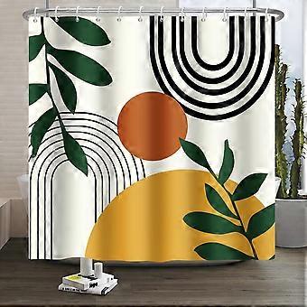 منتصف القرن مجردة بوهو جمالية دش مجموعة الستارة ، خضراء طبيعة ورقة الشمس الحديثة الحد الأدنى المنزل ستارة الحمام ديكور مع 12 خطافا 84 بوصة العرض