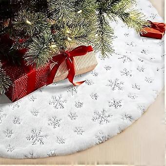Lumi tekoturkis joulukuusihame brodeerattu paljetti lumihiutale pehmo Xmas Tree Skirt pohjakansi (hopea, 48tuumaa)