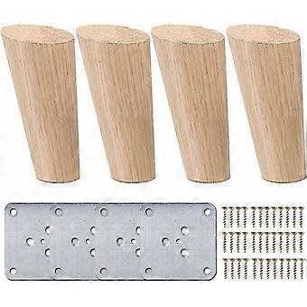 Massiivipuiset huonekalujalat, 10 cm vaihtojalat asennuslevyillä ja ruuveilla sohvalle, sängylle, kaapille, sohvalle, tuolille, 4 viiston puujalan sarjalle