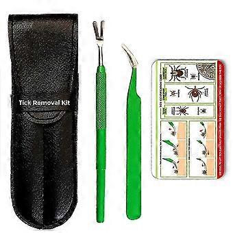 مجموعة مزيل القراد الممتازة - مزيل القراد من الفولاذ المقاوم للصدأ + ملاقط وحقيبة جلدية و Fr