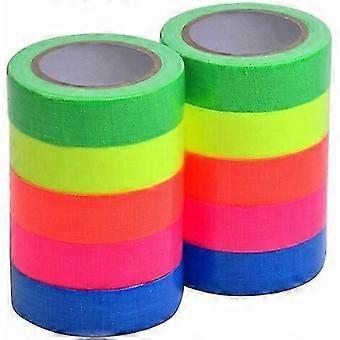 أشرطة الأشعة فوق البنفسجية الفلورية شريط كواشف الشريط الخفيف الأسود ، 5 ألوان شريط نسيج لاصق الفلورسنت (10 لفات)