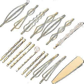 طقم مشبك شعر ذهبي أنيق مكون من 17 قطعة - دبابيس شعر معدنية هندسية للأناقة
