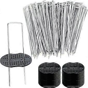 100 kpl Stake Staple U-muotoinen kuumasinkitty teräs maadoitustapin maisemapiikit puskurialuslevyllä ruohon rikkakasvien sulkukankaalle