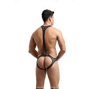 Men Sexy Open Butt Jumpsuit Leotard Mesh Fishnet Singlet Bodysuit Sport Lingerie