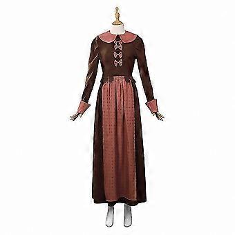 Ragatha-henkinen cosplay-asu, vintage-tilkkutyömekko valkoisella kauluksella ja levenevillä hihoilla