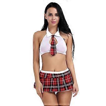 Women Cosplay Costumes Plaid Ruffled Skirts School Uniform Sexy Mini Fancy Dress