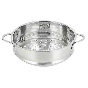 Höyrytysritilä, 18 cm ruostumattomasta teräksestä valmistettu höyrystin, jossa kaksi korvaketta keittokattilaan ja maitokattilaan