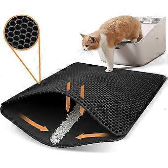 Cat Litter Mat Double Layer EVA Prevent Slip Kitten Litter Trapping Mat for Pet Supplies Black w