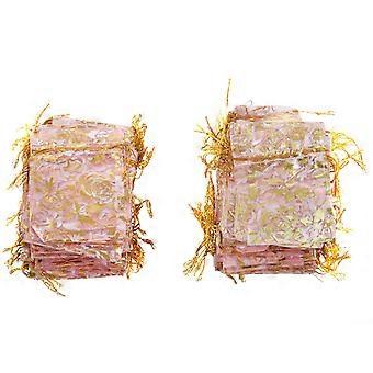 100 قطعة من أكياس هدايا المجوهرات المصنوعة من الأورجانزا الوردية برباط مقاس 7×9 سم، باللون الوردي