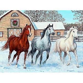 الماس التطريز الحصان اللوحة - الشتاء الثلج فسيفساء الصليب غرزة ديكور المنزل