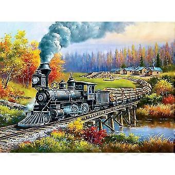 الماس التطريز قطار مشهد اللوحة كيت - فن الفسيفساء الجبلية لديكور المنزل