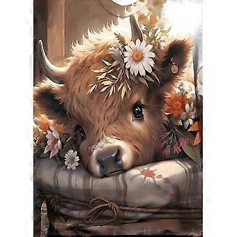 مجموعة الطلاء الماسية Highland Cow 5D للبالغين - حرفة DIY كاملة مع الزهور