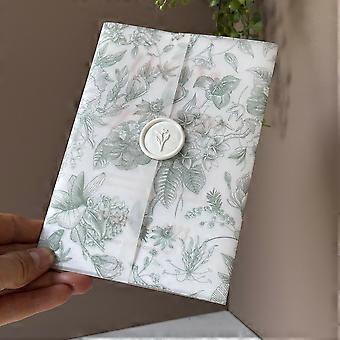 25pcs Blue green or pink flower Vellum Wrap suitable for a 5 x 7 Wedding Invitation