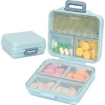 Portable Travel case with 4 Compartments for Pills and Small Items Blue ABS Silicone Storage
