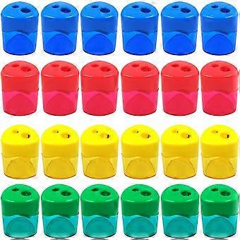 4 kpl:n kaksireikäiset kannelliset kynäteroittimet - Kompaktit kädessä pidettävät teroittimet lapsille, opiskelijoille ja aikuisille - Koulu- ja toimistotarvikkeet