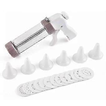 طقم تزيين الكيك مع أداة ضغط ملفات تعريف الارتباط للخبز والديكور بالبلاستيك الأبيض اللون والفولاذ المقاوم للصدأ