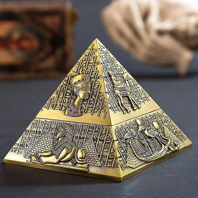 Retro Metal Pyramid Ashtray with Windproof Lid, Indoor and Outdoor (Green Bronze)
