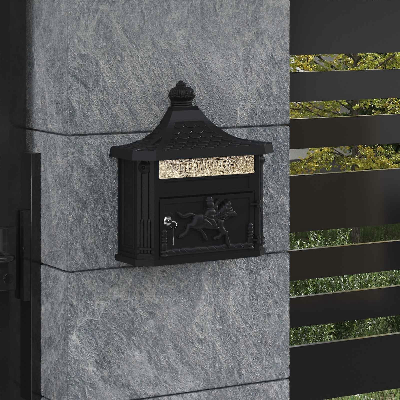 Wandmontierter Briefkasten mit Tür Schwarz 40,5 x 15,5 x 44 cm