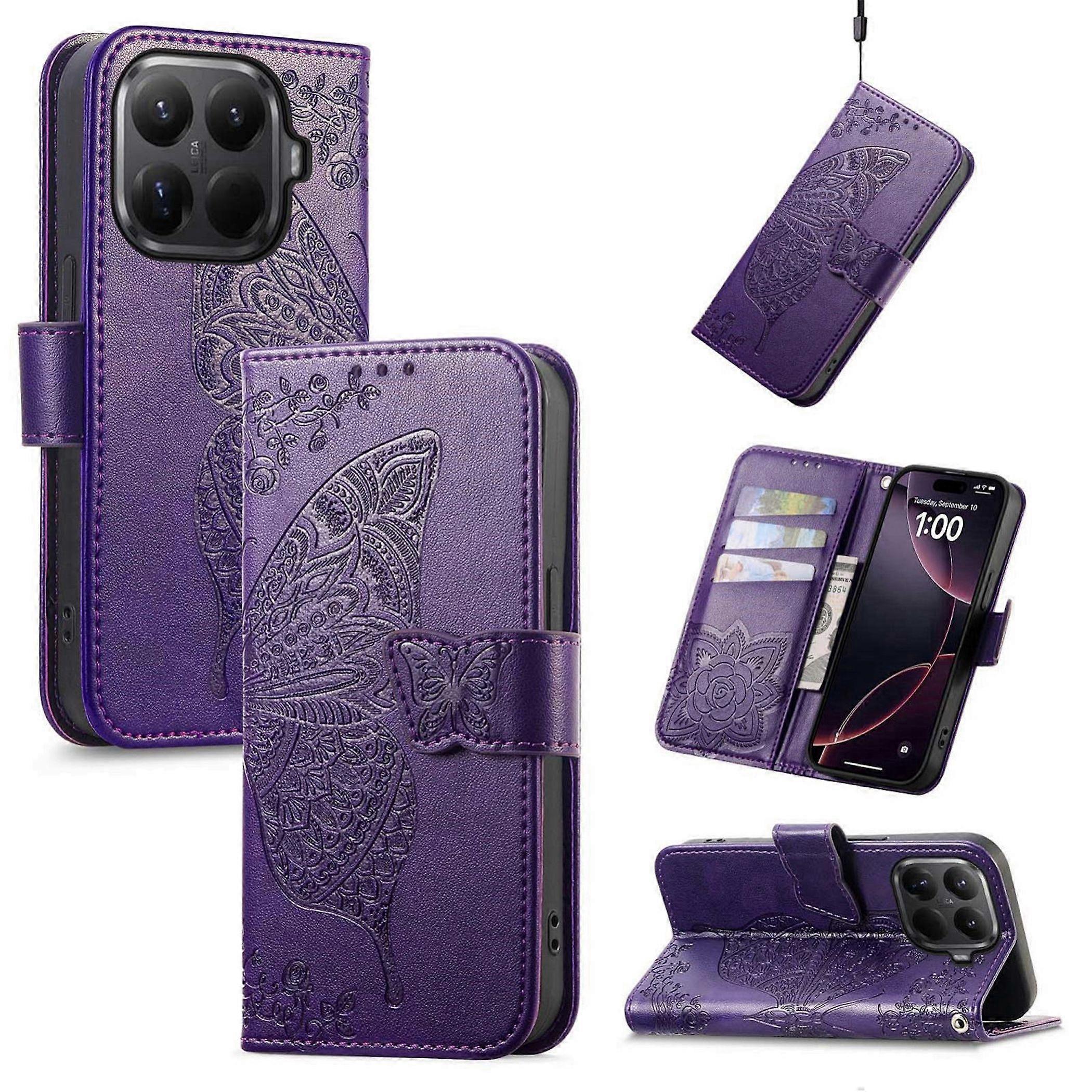 Für Xiaomi 15T Pro Kunstleder Schmetterling Book Wallet Hülle Lila