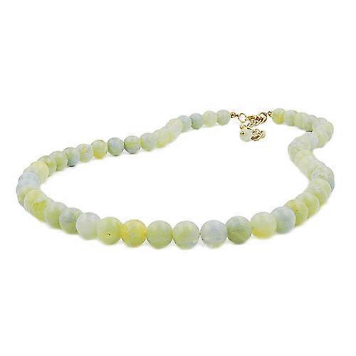 Die zeitlos schöne Halskette mit den hell-marmorierten Perlen ist die perfekte Ergänzung zur sommerlichen Kleidung. Bei diesen hochwertigen 10mm-Kunststoffperlen wurden die Farben Türkisgrün, Weiß und Gelb toll vermischt und jede Perle ist dadurch einzigartig. Die klassisch gefädelte, 55cm lange, im Volksmund - Kullerkette - genannte Perlenkette wird mit einem goldfarbenen Karabiner plus Verlängerungskettchen aus eloxiertem Aluminium und einer passenden Perle als Abschluss verschlossen. Abmessung: 10mm Länge: 55cm Material: Kunststoff Farbe: türkis - grün - gelb Preis per 1 Stck