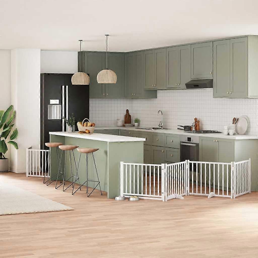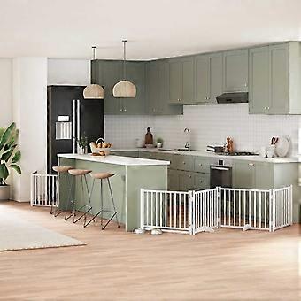 10-tlg. Hundetor mit Tür Faltbar Weiß 800 cm Pappelholz