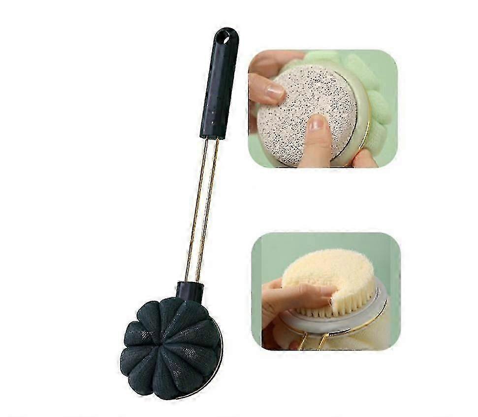 (black)back Shower Brush Long Handle Sponge Shower Flower Pumice Foot 3 In 1 Bath Accessories