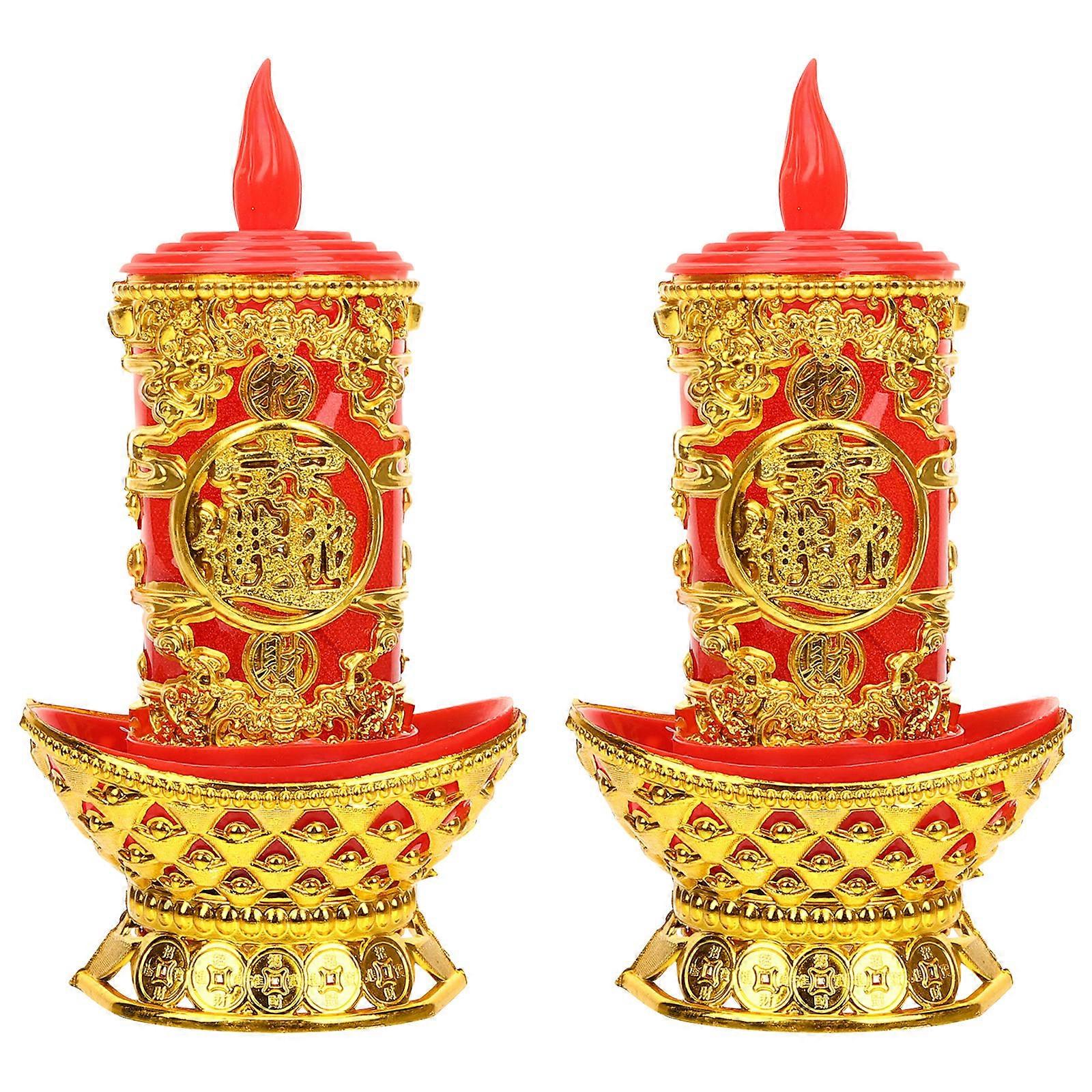 With its utility functions and appearance, it's no doubt a perfect Buddhist LED candle light. This candle light of vintage style with fine handcrafts makes it a delicate ornament for tabletop. You can send it to your friends. Features -Color:Golden -Material:Plastic -Size:18.00X8.00X8.00cm/7.07X3.14X3.14in -Battery: 2 X AAA (not included) -The LED electronic candle light can help create visually peaceful atmosphere in any area. -No dripping wax or smoking worries, no need to clean, these candle lights are convenient to use. -The candle light is suitable for many scenes like Buddhist decoration, bedroom, sauna, yoga , etc. -This delicate LED candle light would be a perfect and gift choice for family, friends, colleagues, etc. -Selected material makes the lamp durable and practical to use, reliable and safe. Package list: 2 x Candle Lights