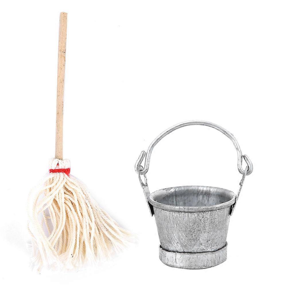 1:12 Miniature Doll House Miniature Mop Bucket Set Accessory Furniture Cleansing Toy