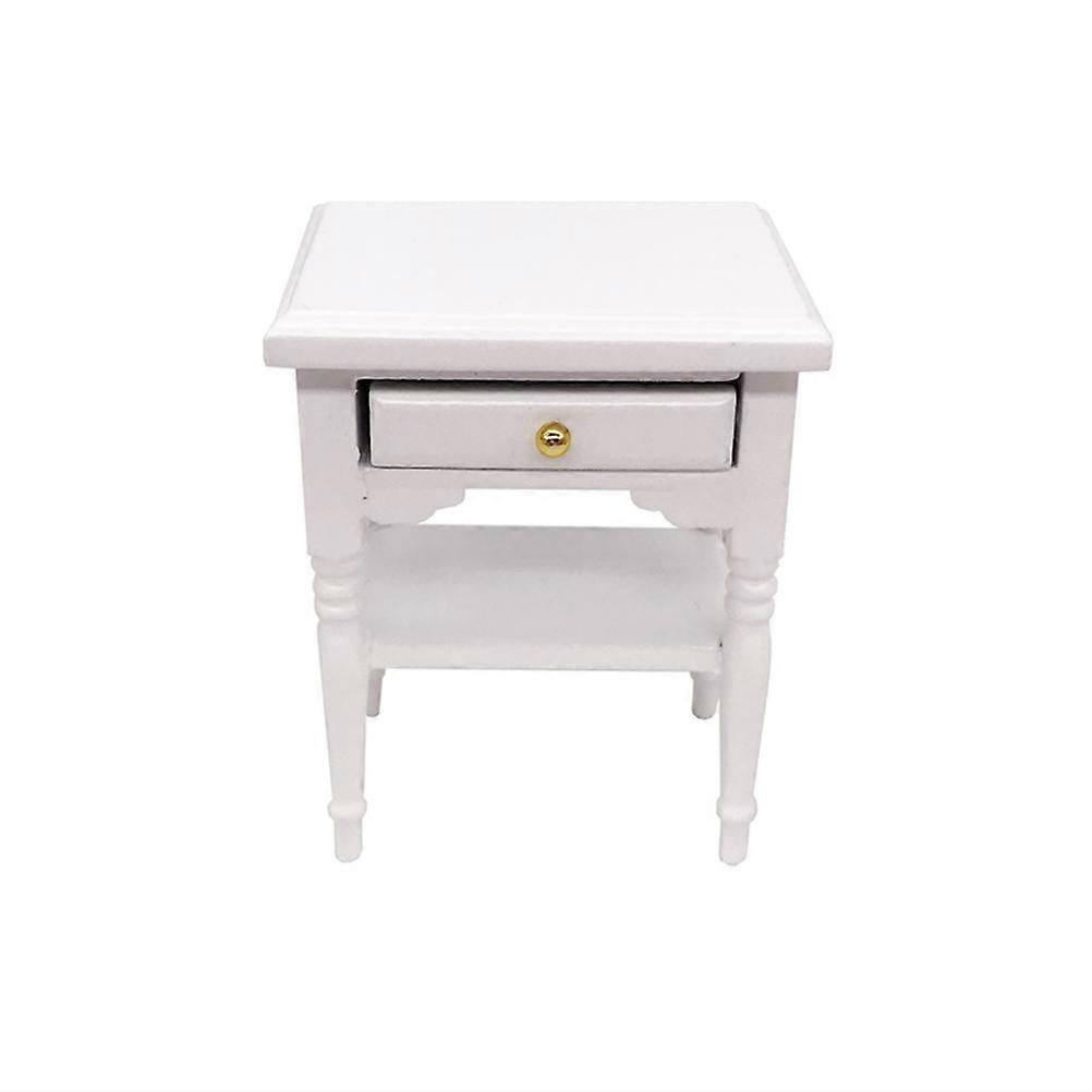 1:12 Mini House Bedside Table Miniature Wooden Furniture Mini House Scene Decoration Ornaments (White)