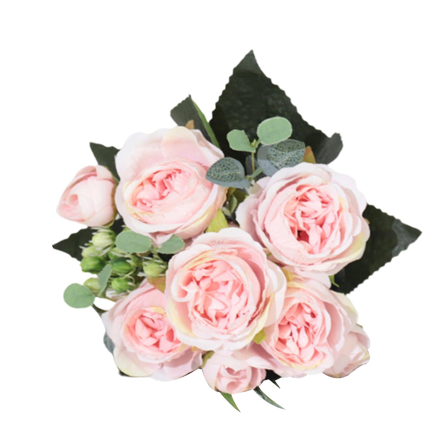 1 Bouquet Artificial Flower Vivid No Watering 5 Heads Tea Rose Fake Flowers Home Decor