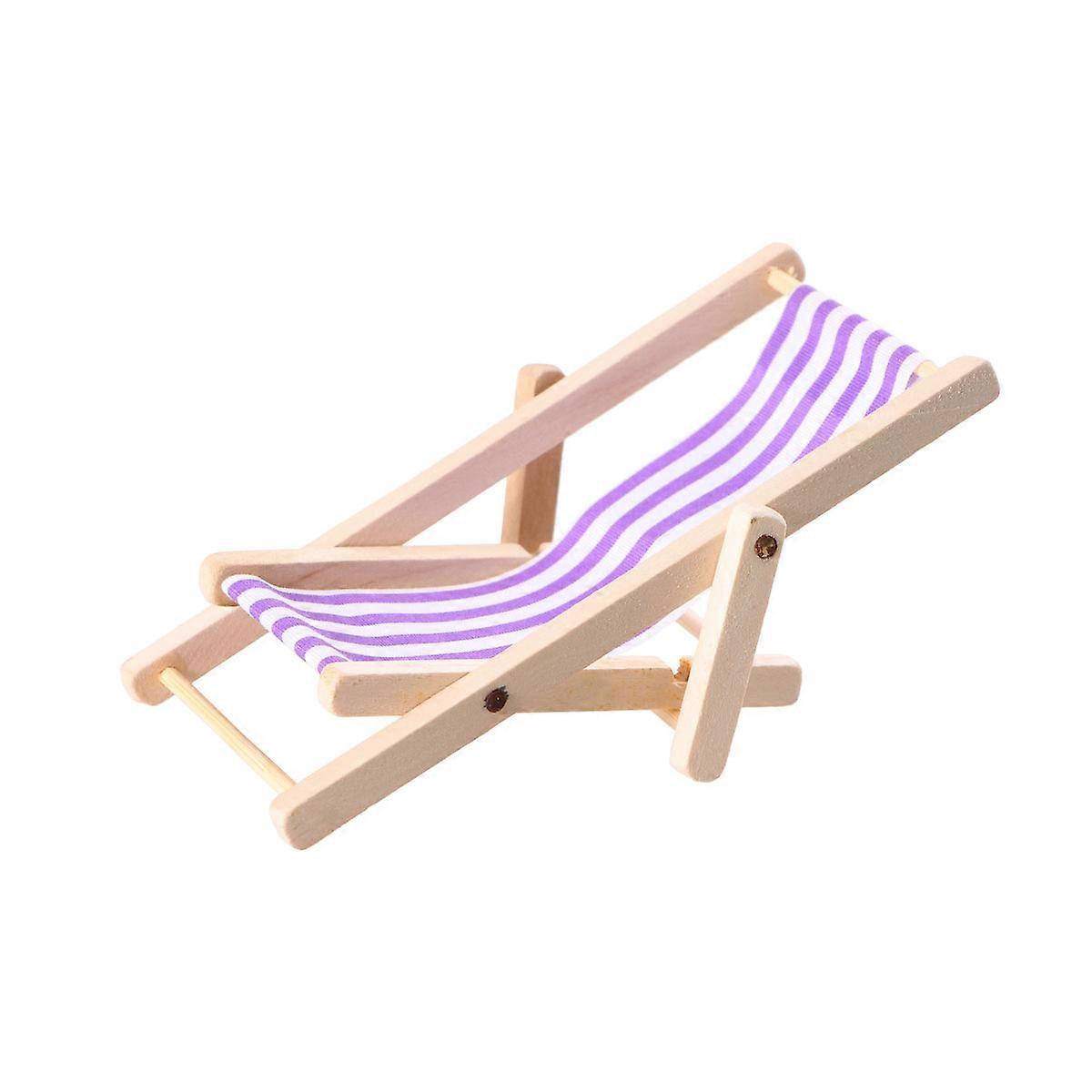 1 Pc Beach Chair Model Mini Outdoor Ornament Stripe Recliner Miniature Play House Accessory for DIY Purple