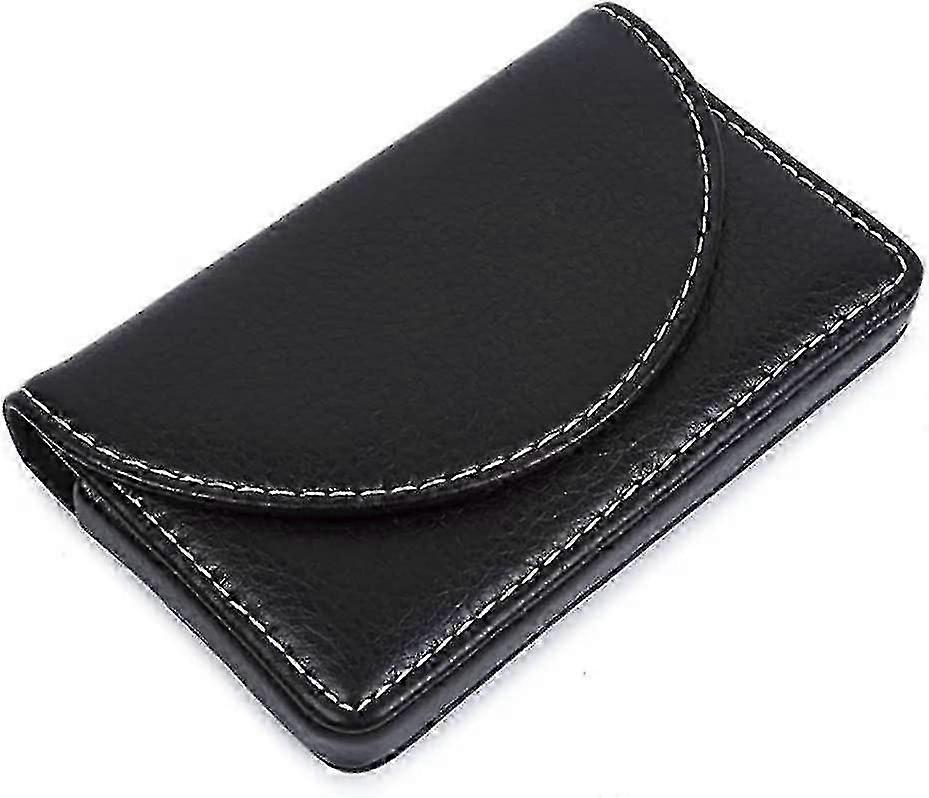1 Pack Business Card Holder, Business Card Holder For Men And Women With Magnetic Buckle And Pu Leather, Lychee Pattern Semicircle Magnetic Business