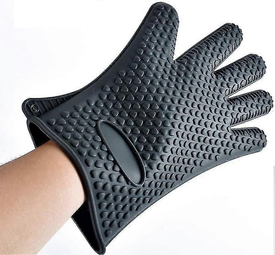 High quality silicone material, safe, non-toxic, heat resistant up to 446F / 230C, easy to clean. The unique love pattern outer layer, more non-slip, can help you securely fix pots, bowls, plates, cutlery, pots and pans. 5 Finger Grips & Extra Long Sleeves: When grabbing hot items, ensure your hands and wrists are fully protected without fear of falling. hot water, open a sturdy jar or even replace a light bulb. Easy to store: adopt the hanging hole design, convenient to store, does not take up space. Easily manage hot food in the kitchen or grill, used as BBQ mitts, baking gloves and camping grounds, both indoors and outdoors. It's the perfect gift for yourself or someone special in your life and every chef should wear one or two of these gloves in the kitchen. Description:: Material: Silicone Size: approx. 27.5*14.5cm Color: black/blue/green/orange/red Weight: approx. 130g Package includes: 1 heat resistant silicone gloves (one piece, not a pair) Feature: - High quality silicone material, safe and non-toxic, heat resistant up to 446F/230C, easy to clean. - The unique love pattern outer layer, more non-slip, can help you securely fix pots, bowls, plates, cutlery, pots and pans. - 5-finger grip and extra-long cuff: When gripping hot objects, ensure that your hands and wrists are fully protected without fear of falling. It can also give you excellent protection when you come in contact with hot water, open a strong jar, or even replace the bulb with confidence. - Easy to store: The hanging hole design is convenient to store and does not take up space. - Easy to clean: Made of food grade silicone, it can be easily cleaned in the sink or in the dishwasher. - Easily handle hot food in the kitchen or grill, use as grill mitts, oven mitts and camping gloves, suitable for indoor and outdoor use. - This is the perfect gift for yourself or someone special in life. Every chef should wear a pair or two of these gloves in the kitchen. Cleaning tips: (1) Please wash with water before use. (2) Dishwasher safe. Note: (1)Due to manual measurement, please allow 1-3mm difference, thanks. (2) Due to the difference between different monitors, the picture may not reflect the actual color of the item.