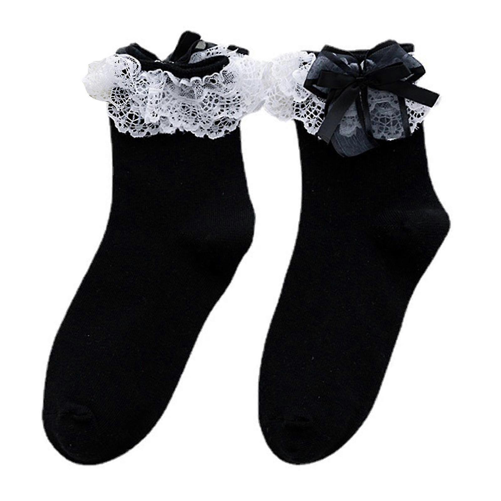 1 Pair Women Girls Sweet Lolita Solid Color Socks Bowknot Lace Trim Japanese Jk Student Stockings