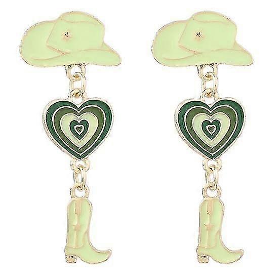 1 Pair Oil-dripping Cowgirl Hat Earrings Boot Love Heart Tassel Women Girls Western Cowboy Hat Dangle Earrings Fashion Accessories Birthday Gift