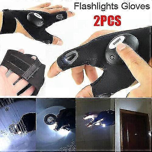 1pair Led Glow Gloves Finger Light Flashlight Outdoor Camping Lamp Usb Charged