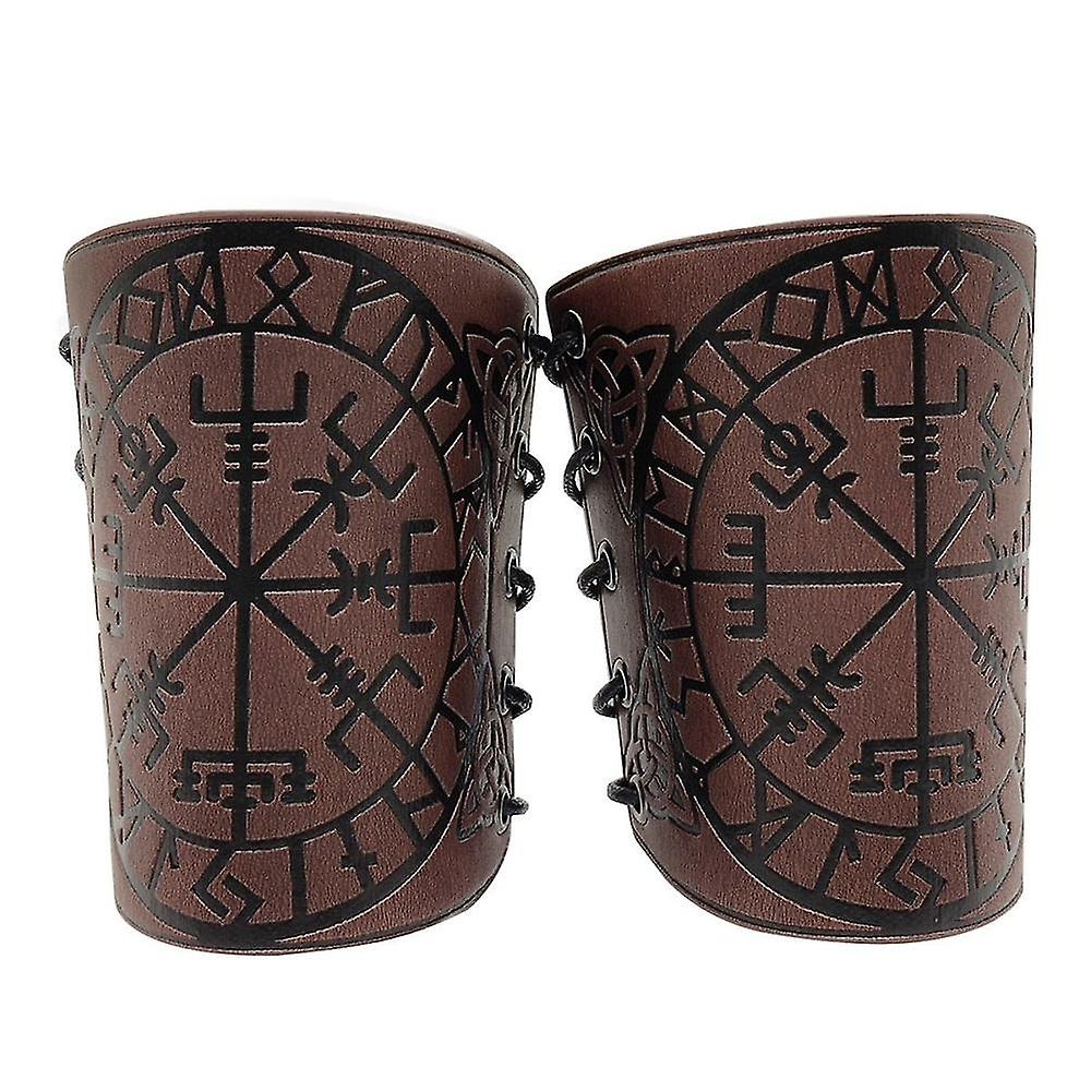 1 Pair Cosplay Props Retro Vegvisir Embossed Leather Arm Armor Medieval Wristband Brown
