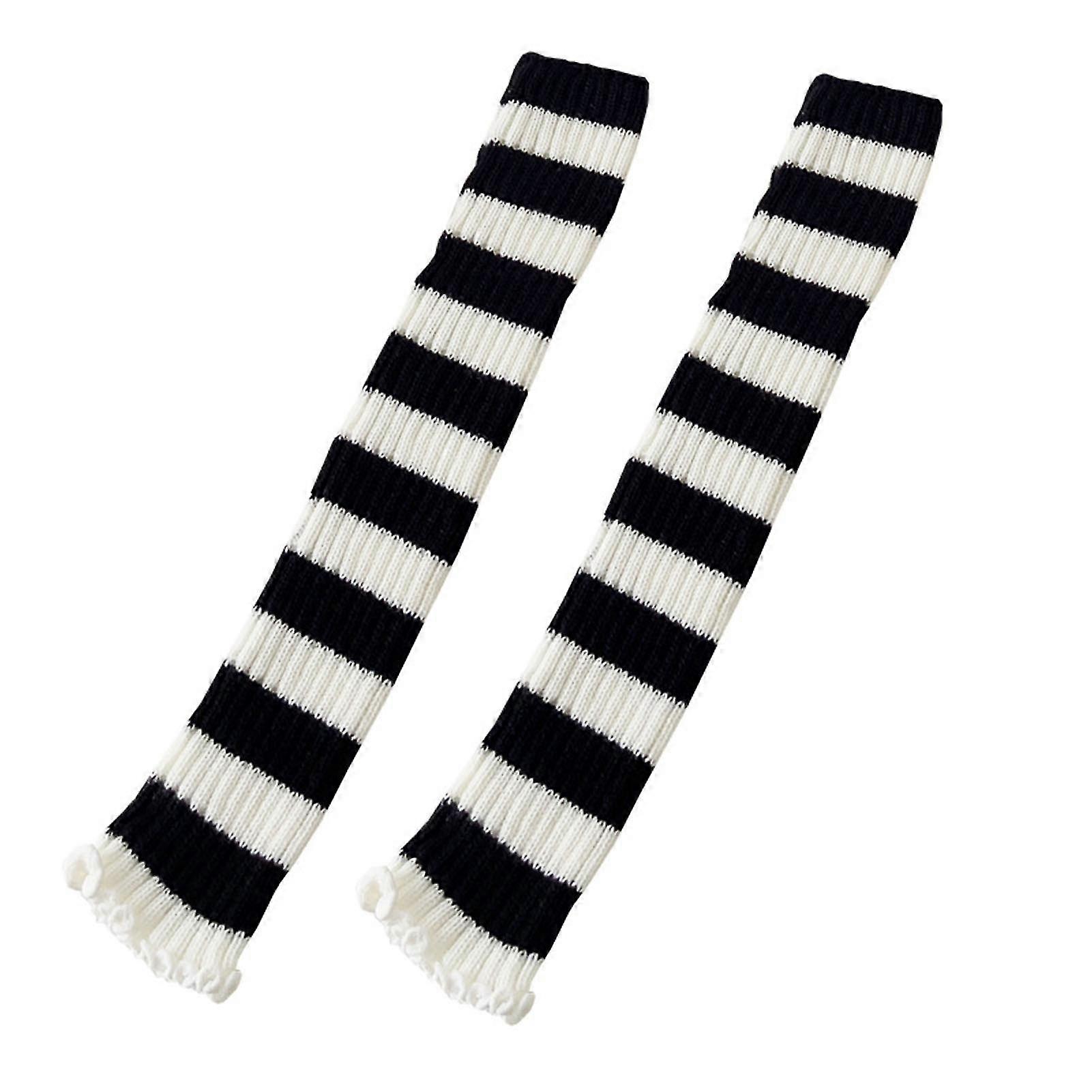 1 Pair Leg Warmers Knee High Black White Stripe Knitted Stretchy Super Soft Keep Warm Autumn Winter Women Boot Stockings