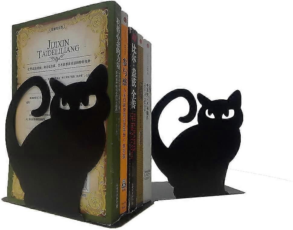 1 Pair Vivid Lovely Persian Cat Bookends For Shelves Cat Statue Book End Decorative Animal Metal Bookends (black)