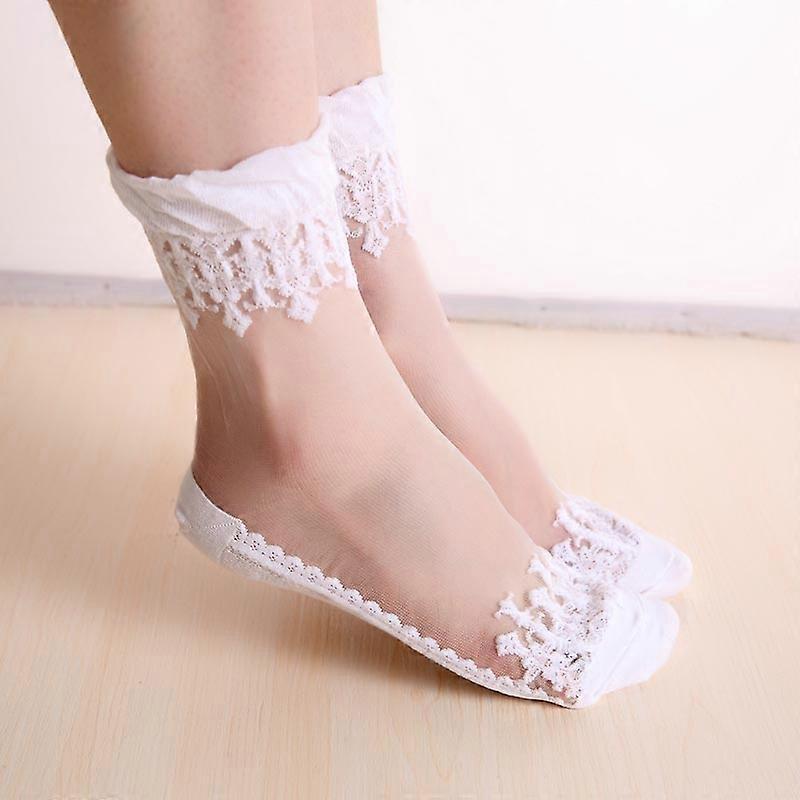 1 Pair Spring Summer Ladies Ultrathin Lace Embroidery Silk Transparent Glass Crytal Stretch Women Soft Elastic Breathable Socks