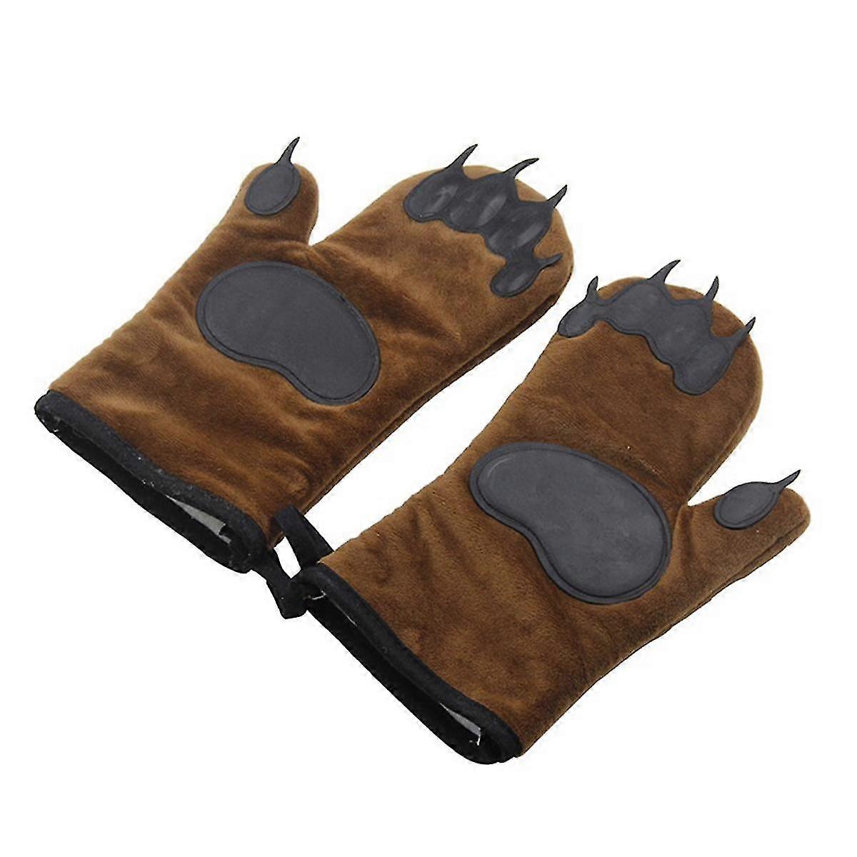 1 Pair Microwave Gloves Cute Bear Claw Oven Insulation Gloves Kitchen Baking Supplies Brown