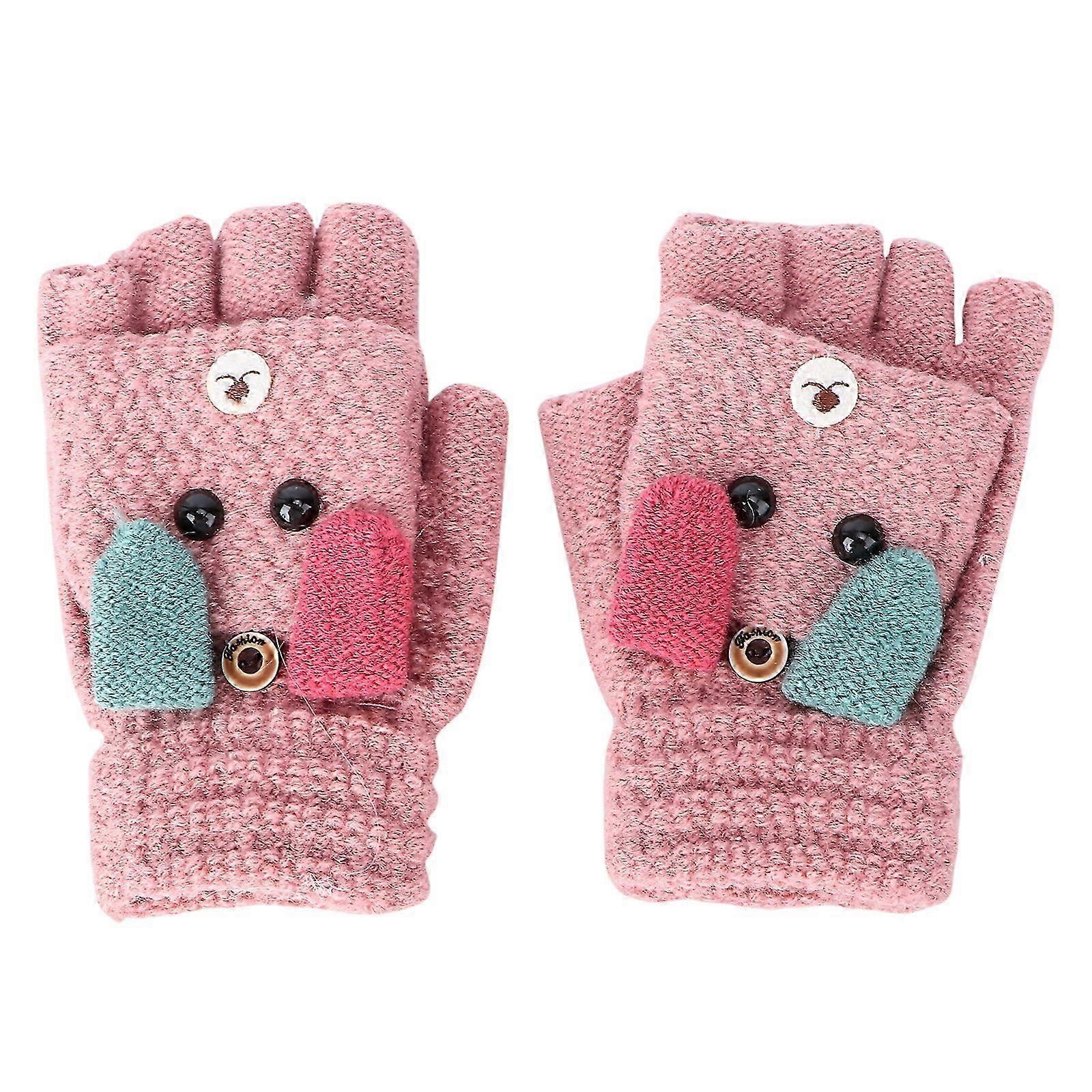 1 Pair Knitted Half-finger Gloves Cartoon Puppy Clamshell Mitten Warm Mitts