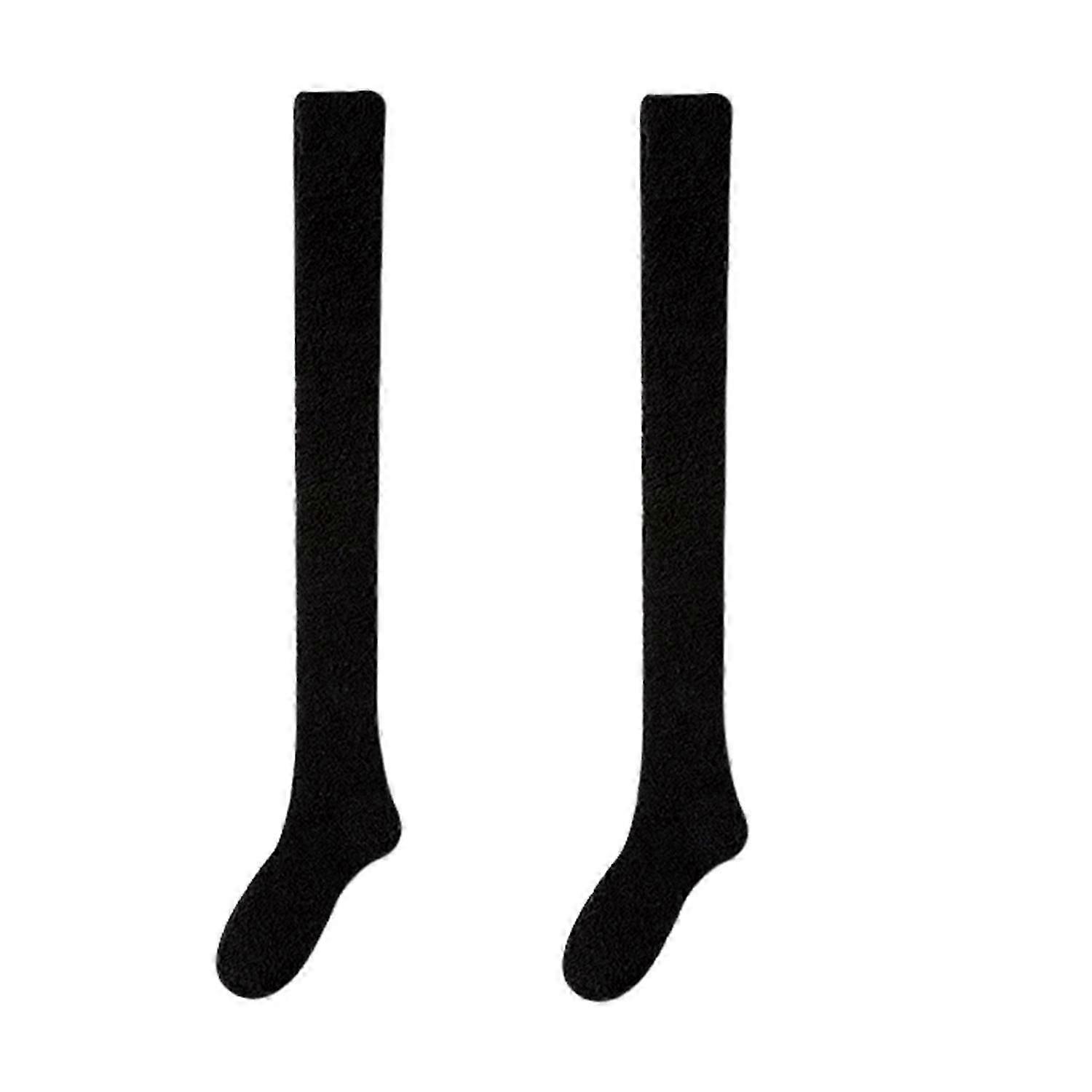 1 Pair Women Winter Socks Tihick Plush Over Knee Socks Anti-slip Coral Fleece Solid Color Warm